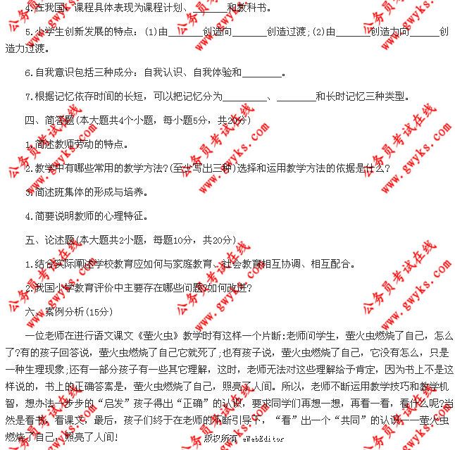 6.【答案】B。解析:“雜施而不孫,則壞亂而不修”的意思是教師雜亂地施教,學(xué)生不按序?qū)W習(xí),會使學(xué)生頭腦混亂不知所措。因此主張對應(yīng)的教學(xué)原則應(yīng)是循序漸進(jìn)原則。