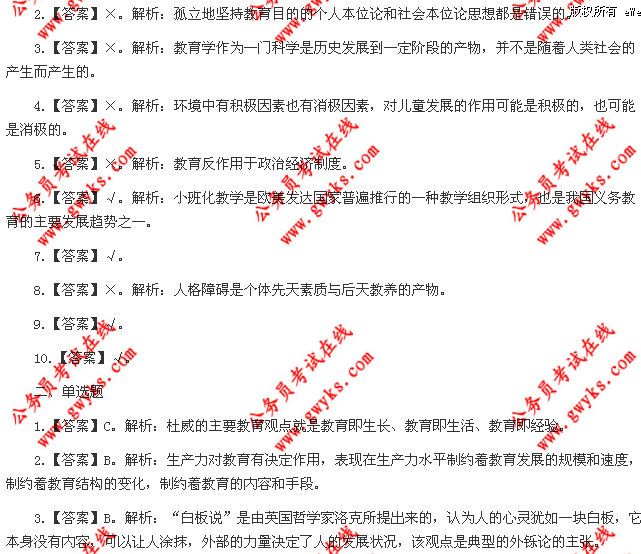 1.【答案】×。解析:形成技能、技巧是運用知識的中心環(huán)節(jié)。