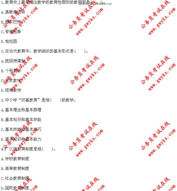 7.所謂在教學時要“用一把鑰匙開一把鎖”,是指教師要有( )。