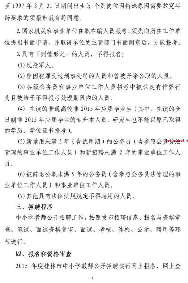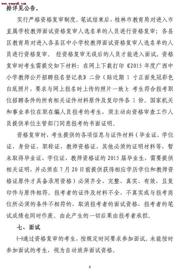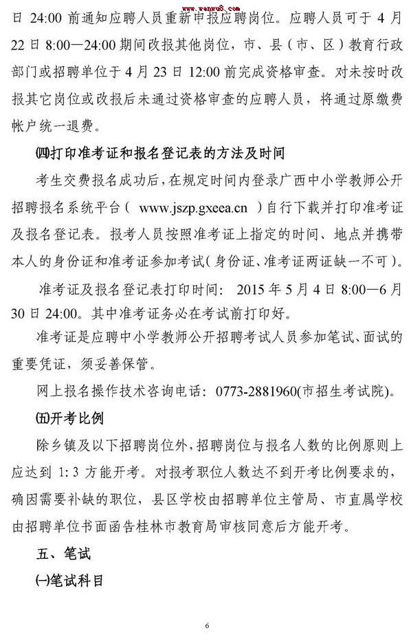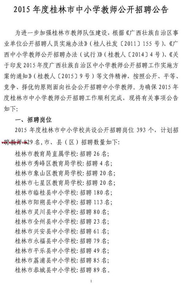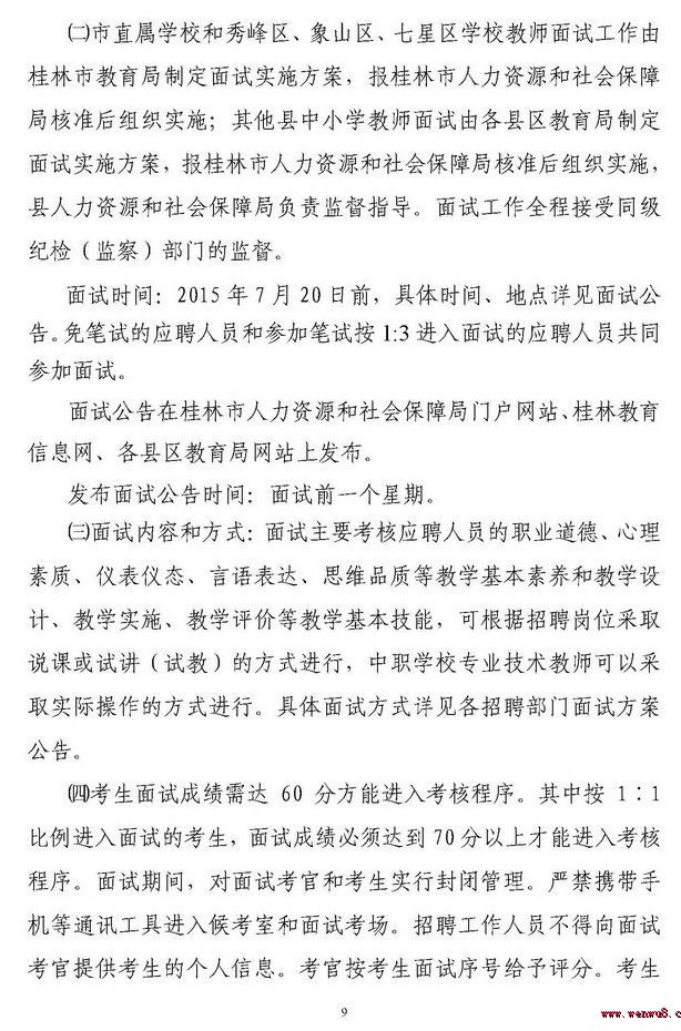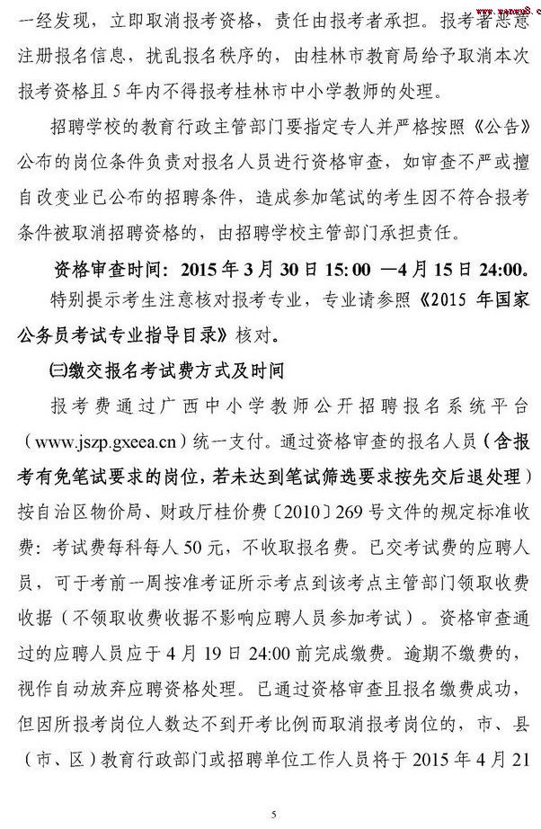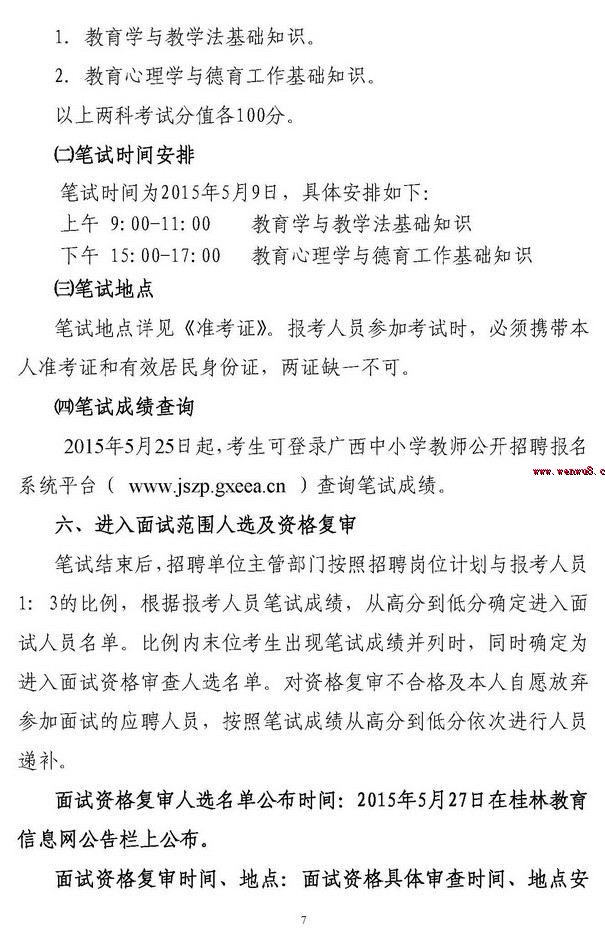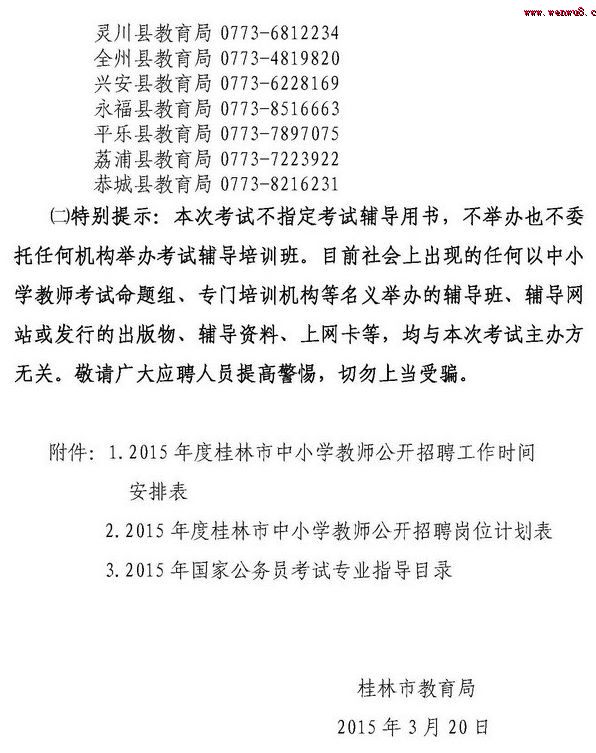 2015年度桂林市中小學教師公開招聘工作時間安排表