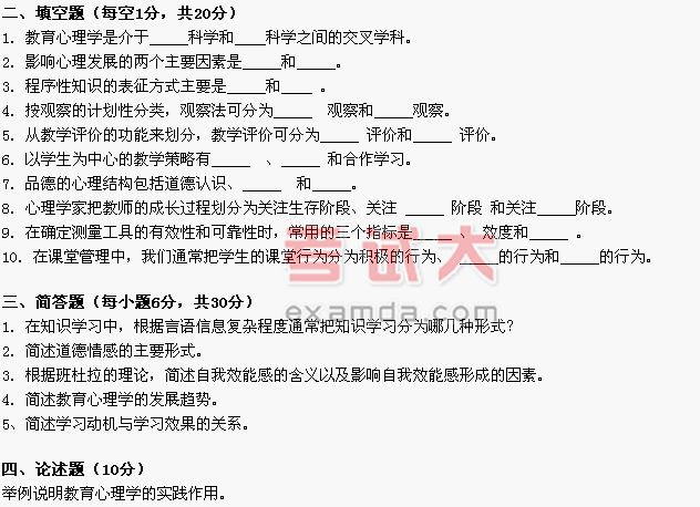 1.教育心理學(xué)主要研究的是學(xué)校教育中的 ( )