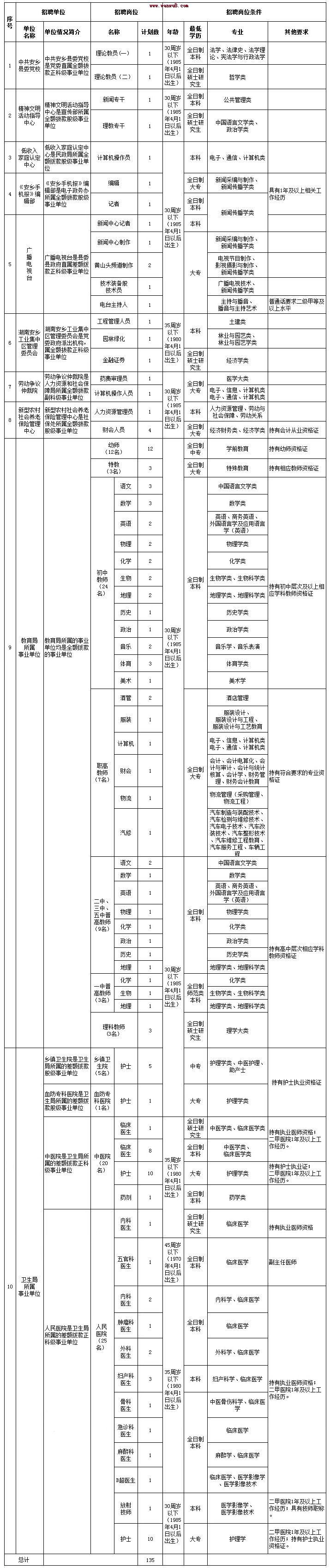 安鄉縣部分事業單位公開招聘崗位條件及數量表