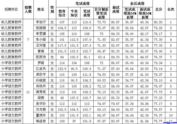 現(xiàn)將2015年邵武市公開招聘新任教師入圍體檢人員名單予以公示。