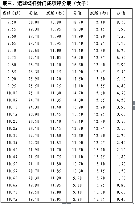 該項(xiàng)目成績(jī)滿分為30分,達(dá)標(biāo)成績(jī)及評(píng)分標(biāo)準(zhǔn)詳見表二、表三。