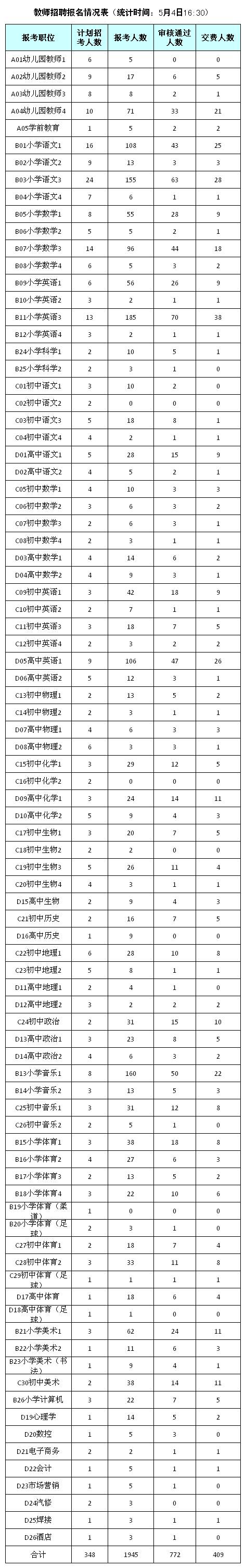 4、截止5月4日16:30,各崗位報名情況公示如下,請各位考生留意并理性報考。