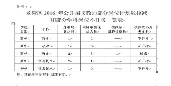 附件:龍灣區2016年公開招聘教師部分崗位計劃數核減和部分學科崗位不開考一覽表