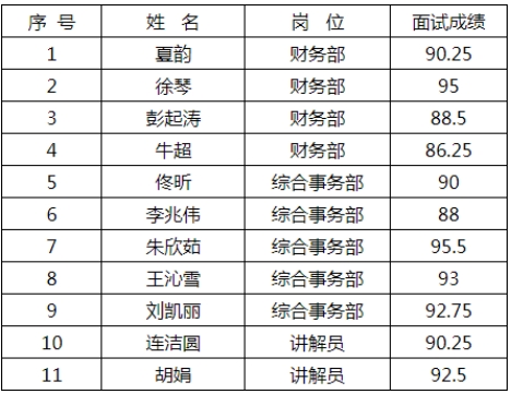 按照《含山縣文化旅游建設投資有限公司招聘工作人員公告》規(guī)定,現(xiàn)對含山縣文化旅游建設投資有限公司招聘工作人員面試成績予以公示。公示期為5個工作日,自2023年5月8日—5月12日。我公司擬錄用同一崗位面試成績第一名,有放棄或者體檢不合格的,依次遞補。對成績有異議,可在公示期內(nèi)進行反映,聯(lián)系電話:0555-4333551。
