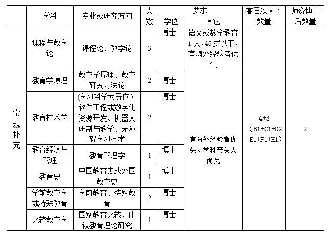 根據(jù)《陜西師范大學2015年人員補充工作的意見》(陜師校發(fā)[2014]95號)文件精神,陜西師范大學教育學院決定面向海內(nèi)外引進高層次人才、常規(guī)補充教學科研人員和師資博士后。現(xiàn)將有關(guān)事宜公告如下: