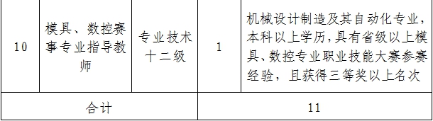 3.面試(實操)。序號1—9的招聘崗位(即專業(yè)理論教師)的面試采取說課的方法;序號10的招聘崗位(即模具、數(shù)控賽事專業(yè)指導(dǎo)教師)的面試采取實操的方法,實操內(nèi)容包括崗位所需的工作技能。面試工作由河源技師學(xué)院組織實施,市人力資源和社會保障局派員監(jiān)督。