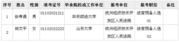 2015年杭州市考試錄用公務員考察公示名單(經濟技術開發區法院)