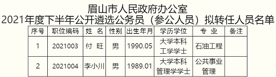 附件:眉山市人民政府辦公室2021年度下半年公開遴選公務員(參公人員)擬轉任人員名單