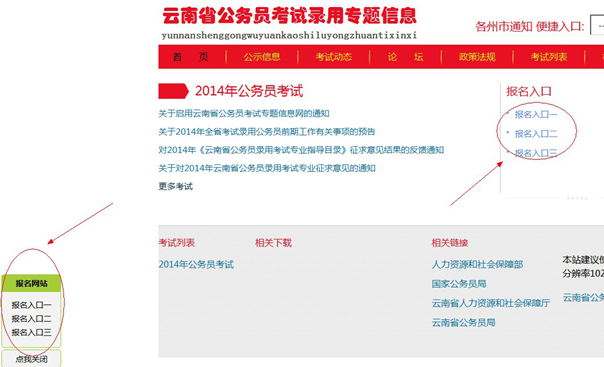 2、在網頁右側或左下側,點擊報名入口一、二、三里的任意一個,進入報名系統;