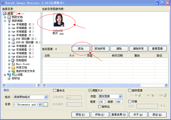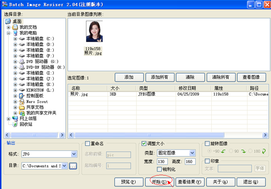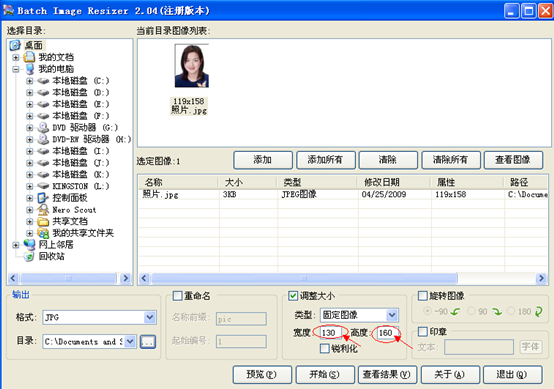 6、調整圖像大小,將其設置為130(寬度)×160(高度);