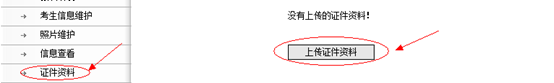 13、點擊“證件資料”后點擊【上傳證件資料】(此處所指“證件資料”統一為身份證正面的掃描圖片;如有加分證明材料的掃描圖片或電子照片,也在此處附加上傳。這里可附加多張電子照片);