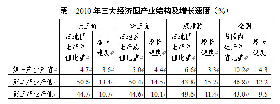 三大經濟圈中,2010年三次產業增長速度均超過全國平均水平的有幾個?