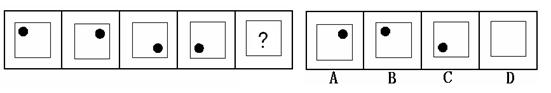 解答:在例題中,黑點在正方形中順時針移動。在第5個圖形中,應該正好移動到左上角。因此,正確答案是B。