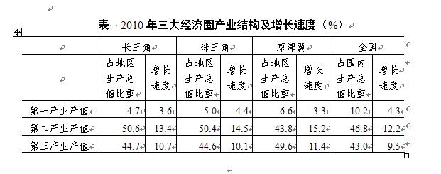 三大經濟圈中,2010年三次產業增長速度均超過全國平均水平的有幾個?