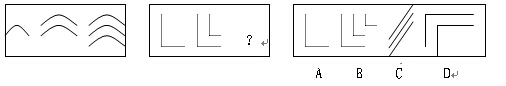 解答:正確答案為B。因為只有B能使兩套圖形具有相似性,僅僅元素不同,一個是實的曲線,一個是虛的直線,但兩組圖形中元素的排列規律完全相同。
