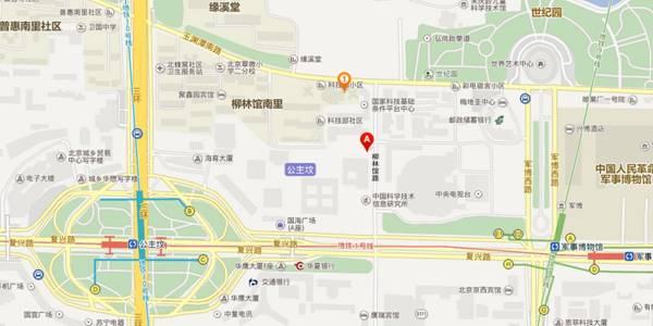 交通方式:地鐵1號線、9號線可到軍事博物館站,地鐵1號線、10號線可到公主墳站,32、78、85、414路到柳林館站,其他公交線路可到公主墳北、公主墳東、公主墳南或八一湖站。
