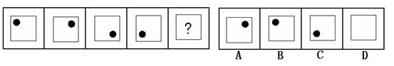 (答案:B。黑點在正方形中順時針移動。在第5個圖形中,應(yīng)該正好移動到左上角。)
