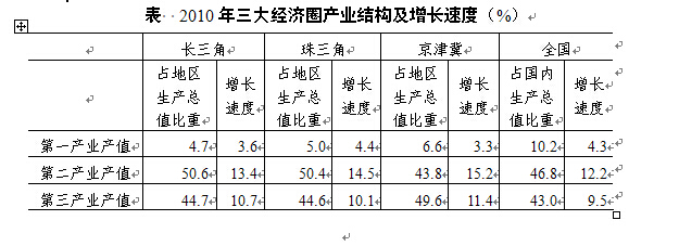 三大經濟圈中,2010年三次產業增長速度均超過全國平均水平的有幾個?