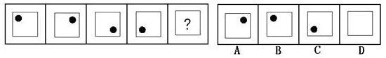 (答案:B。黑點在正方形中順時針移動。在第5個圖形中,應該正好移動到左上角。)