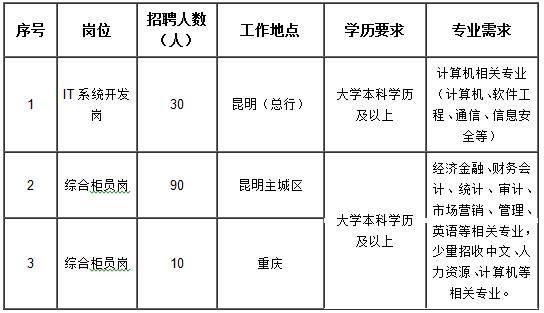 富滇銀行股份有限公司2016年云南省外院校校園招聘啟事