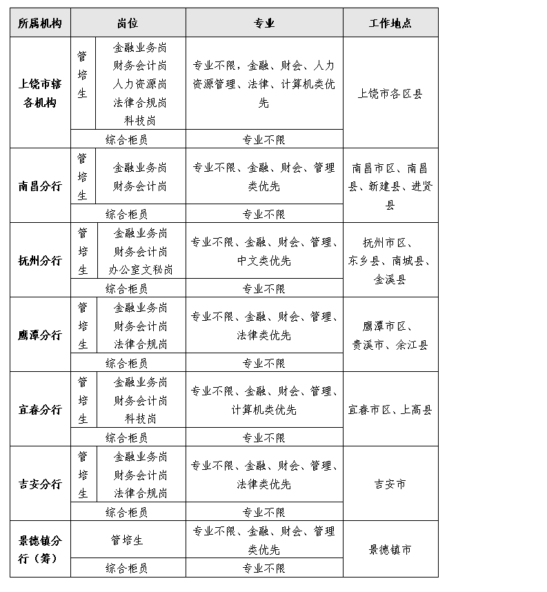 上饒銀行,經(jīng)中國銀行業(yè)監(jiān)督管理委員會(huì)批準(zhǔn)于2007年6月正式成立,成立以來,各方面取得了快速的發(fā)展和進(jìn)步。因機(jī)構(gòu)擴(kuò)展和業(yè)務(wù)發(fā)展需要,現(xiàn)面向各高校誠聘英才!