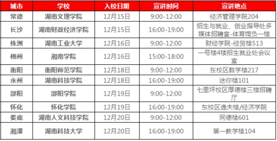 4、招聘項(xiàng)目組將在10所高校進(jìn)行招聘宣講并進(jìn)行簡歷接收和現(xiàn)場初面,具體安排如下: