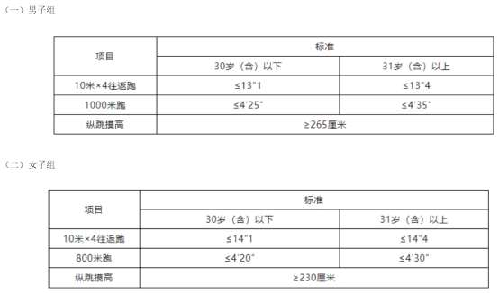 面試結(jié)束,參考人員進(jìn)入體能測評環(huán)節(jié)。體能測評內(nèi)容及標(biāo)準(zhǔn)參照《公安機關(guān)錄用人民警察體能測評項目和標(biāo)準(zhǔn)》等規(guī)定執(zhí)行。即: