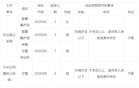 本次招聘輔警計劃20名,具體崗位詳見下表: