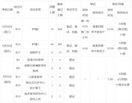 上述需要筆試的崗位,筆試成績將在當天中午直接公布,以60分為合格線(卷面滿分為100分),合格者按成績從高分到低分,根據崗位招聘人數和報考人數比例依序確定列入面試人員名單,除B14崗位為1:2外,其余崗位均為1:3。筆試成績將于面試報到前在我院官網www.wx2h.com“人才招聘”欄公布。