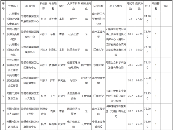 2025年無錫市濱湖區事業單位公開招聘工作人員經報名、資格審核、筆試、面試、體檢、考察等規定程序,現將擬錄用人員名單予以公示。公示時間自2025年7月18日至2025年7月28日,監督電話:0510-81178680。 無錫市濱湖區人力資源和社會保障局 2025年7月18日