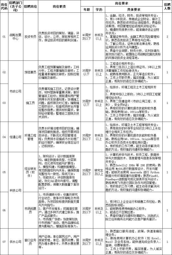 為適應(yīng)公司高質(zhì)量發(fā)展要求,建設(shè)高素質(zhì)、專(zhuān)業(yè)化人才隊(duì)伍,按照相關(guān)政策規(guī)定,現(xiàn)面向社會(huì)公開(kāi)招聘工作人員8名,現(xiàn)將有關(guān)事項(xiàng)公告如下: