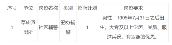 7.同等條件下,優先招聘烈士和因公犧牲人民警察的配偶以及子女、退役軍人、見義勇為人員、警察類或政法類院校畢業生;