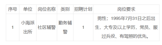 7.同等條件下,優先招聘烈士和因公犧牲人民警察的配偶以及子女、退役軍人、見義勇為人員、警察類或政法類院校畢業生;