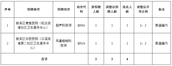 根據《2025年無錫高新區(新吳區)醫療衛生事業單位公開招聘工作人員公告(普通類)》(錫人社事招公告備〔2025〕47號)相關規定,經無錫高新區(新吳區)人力資源和社會保障局、無錫市人力資源和社會保障局備案,對以下崗位進行調整。