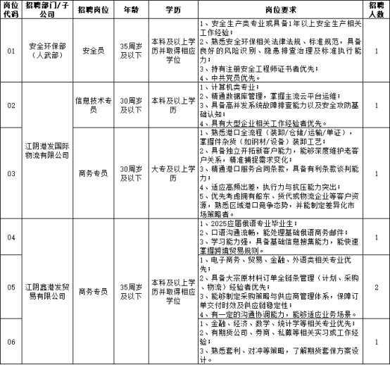 本次招聘解釋權屬江陰市港口發展投資集團有限公司。