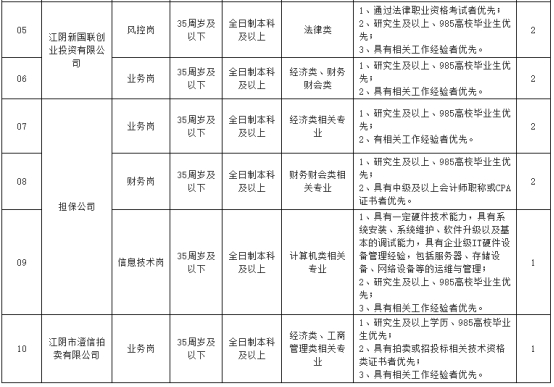 江陰市新國(guó)聯(lián)集團(tuán)有限公司成立于2001年3月,是江陰市人民政府出資設(shè)立的國(guó)有獨(dú)資企業(yè)。集團(tuán)下轄子公司因業(yè)務(wù)發(fā)展需要,決定面向社會(huì)公開(kāi)招聘工作人員14名,現(xiàn)將有關(guān)事項(xiàng)公告如下: