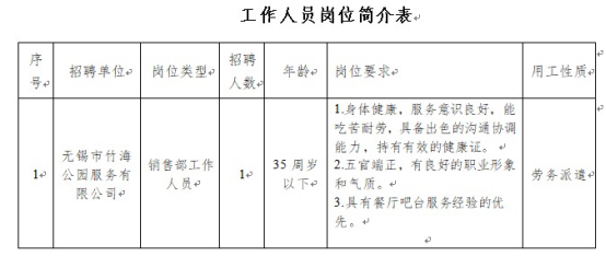 4.具有崗位要求的其他條件(詳見下方《無錫市竹海公園服務有限公司崗位簡介表》)