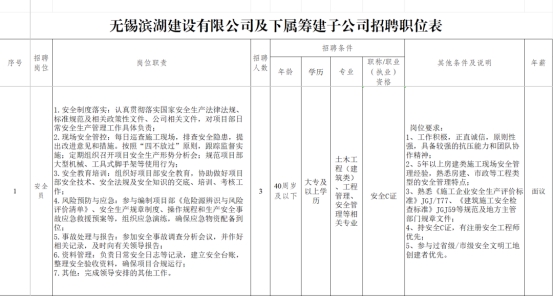 為加強(qiáng)人才隊(duì)伍建設(shè),引進(jìn)優(yōu)秀專業(yè)人才,結(jié)合實(shí)際工作需要,無錫濱湖建設(shè)有限公司及下屬籌建子公司面向社會公開招聘工作人員3名,現(xiàn)將有關(guān)事項(xiàng)公告如下: