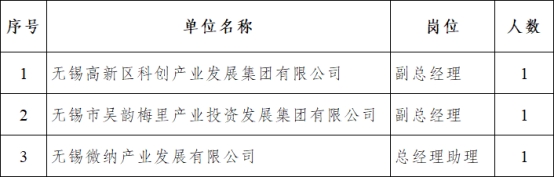 為進一步加大引育創新人才力度,加強區屬國有企業領導班子和人才隊伍建設,經研究,無錫高新區(新吳區)面向社會公開選聘國有企業領導人員3名,現將有關事項公告如下: