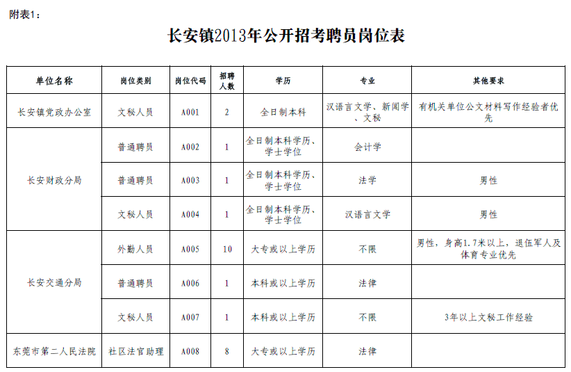 (7)除黨政辦文秘人員及交通分局文秘人員外,其他職位均要求長安戶籍人員報考;