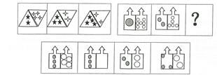 (一)每道題包含兩套圖形和可供選擇的4個圖形。這兩套圖形具有某種相似性,存在某種差異。要求你從四個選項中選擇最適合取代問號的一個。正確的答案應不僅兩套圖形表現出最大的相似性,而且使第二套圖形也表現出自己的特征。