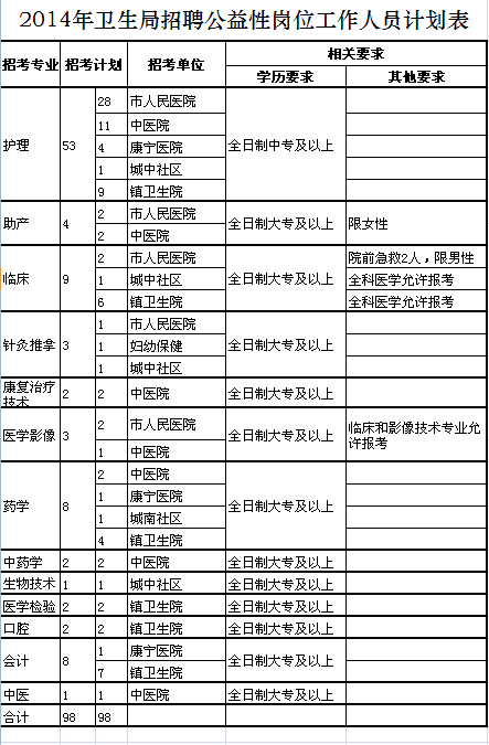 1、2014年衛生局招聘公益性崗位工作人員計劃表.xls