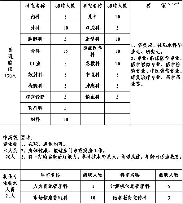 根據臨床各科人才需求,現擬定并公開招聘應、往屆大學畢業生,研究生及中、高級專業技術人員171人,具體職位見附件。