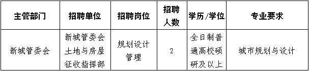 為適應浙江舟山群島新區建設需要,進一步強化人才隊伍建設,根據《浙江省事業單位公開招聘人員暫行辦法》要求,經舟山市人力資源和社會保障局同意,新城管委會下屬事業單位—新城管委會土地與房屋征收指揮部決定面向社會公開招聘2名高層次人才。現將有關事項公告如下:
