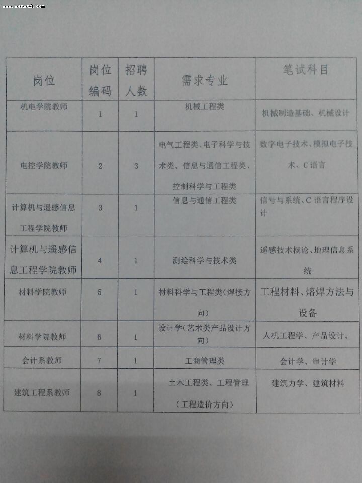 北華航天工業學院2014年第三次單位招聘工作人員公告