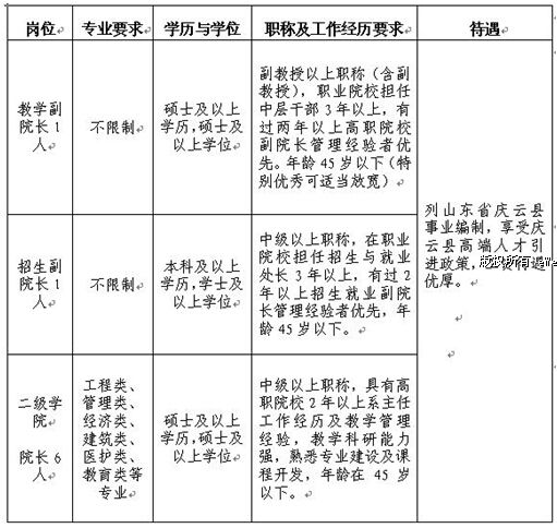 根據學院發展需要,按照《德州市事業單位公開招聘人員實施辦法》(德政辦發〔2006〕35號)、《關于加強事業單位人事管理的意見》(魯人社發〔2013〕13號)和《關于印發<德州市事業單位公開招聘工作人員實施細則>的通知》(德人社〔2014〕21號)的有關規定和要求,經縣委、縣政府研究同意,2015年面向社會公開招聘副院長2名、二級學院院長6名(招聘教師142名另行公告),現將有關事項公告如下: