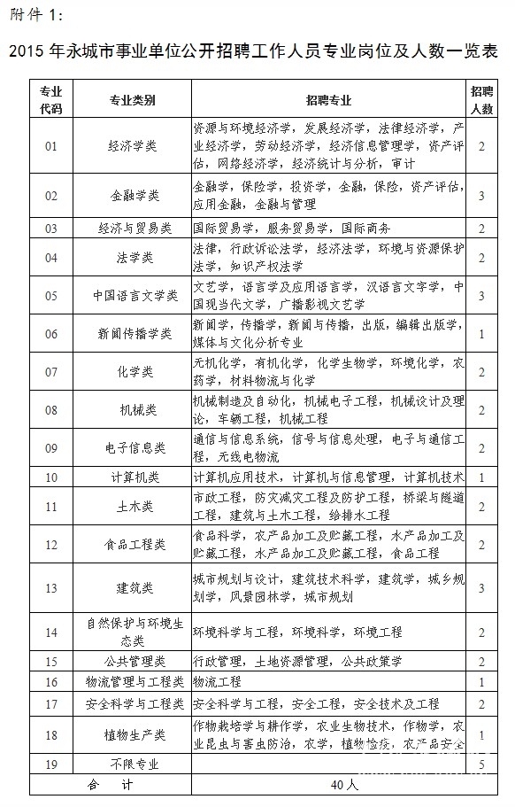 為進一步優化事業單位人員結構,提高事業單位人員素質,滿足市直事業單位用人需求。經市政府研究,決定面向社會公開招聘全日制普通高等院校碩士研究生及以上學歷人員40名。特制定實施方案:本方案公示時間為2015年6月26日至7月3日。